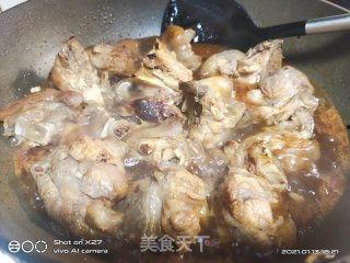 2. 炒糖色:锅中加入适量的油,放入冰糖,小火慢慢炒至冰糖融化,颜色变成深红色。